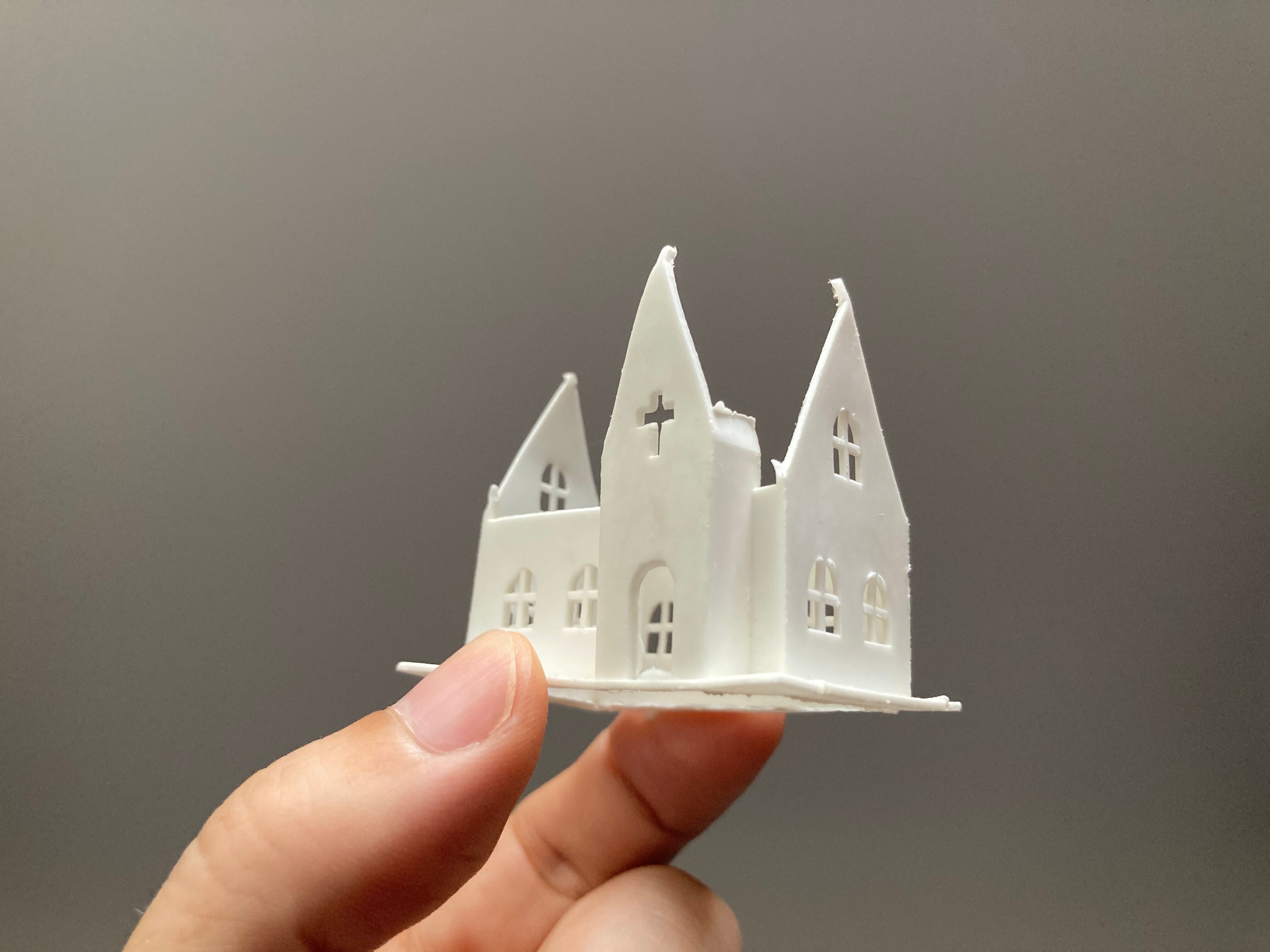 柔らかめなプラスチックでできた、教会のおもちゃの一部。