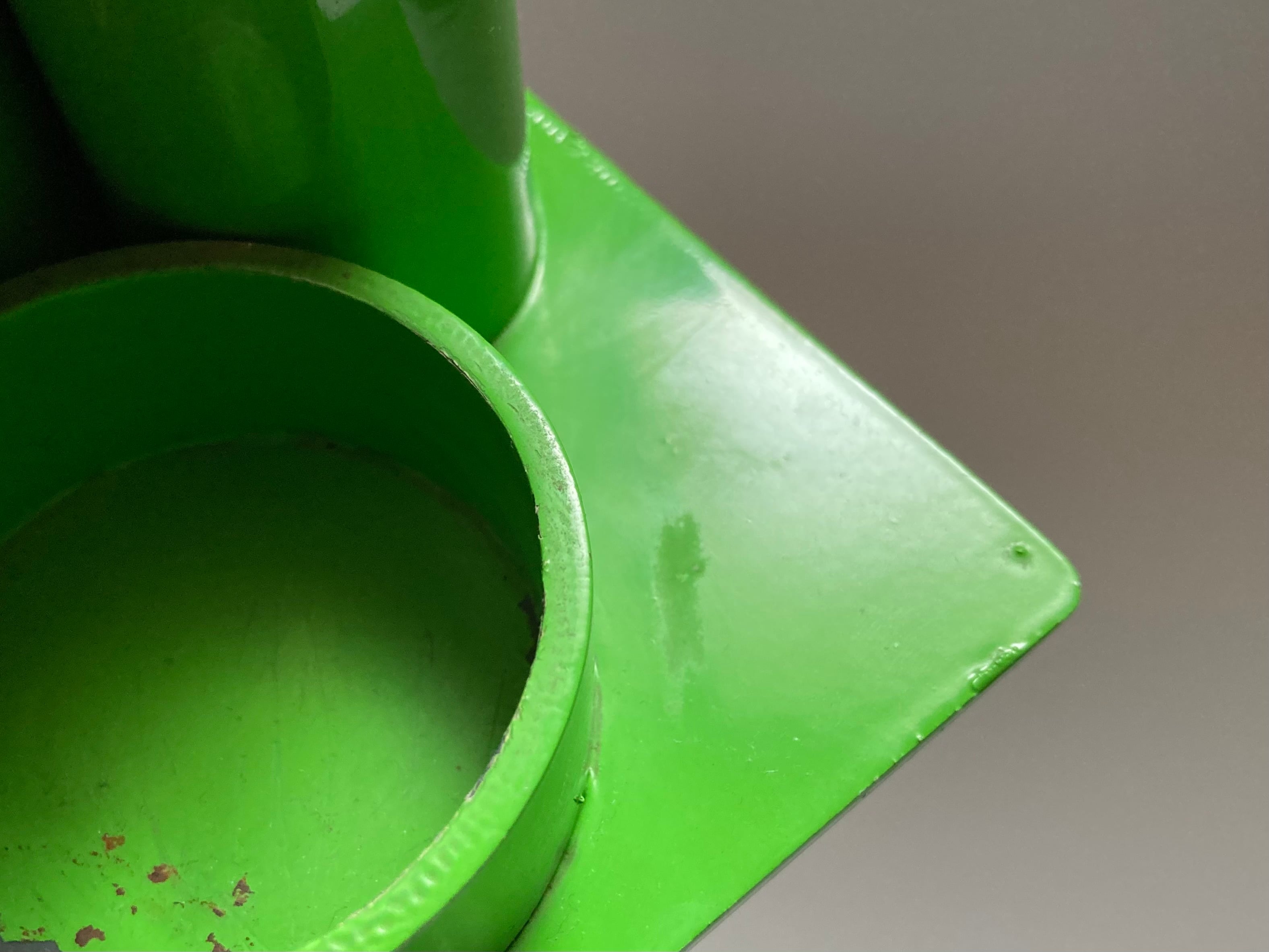 ペイントが剥がれたところから塩ビ管のようなグレーが覗いているし、底面の処理もラフ過ぎでしょう。