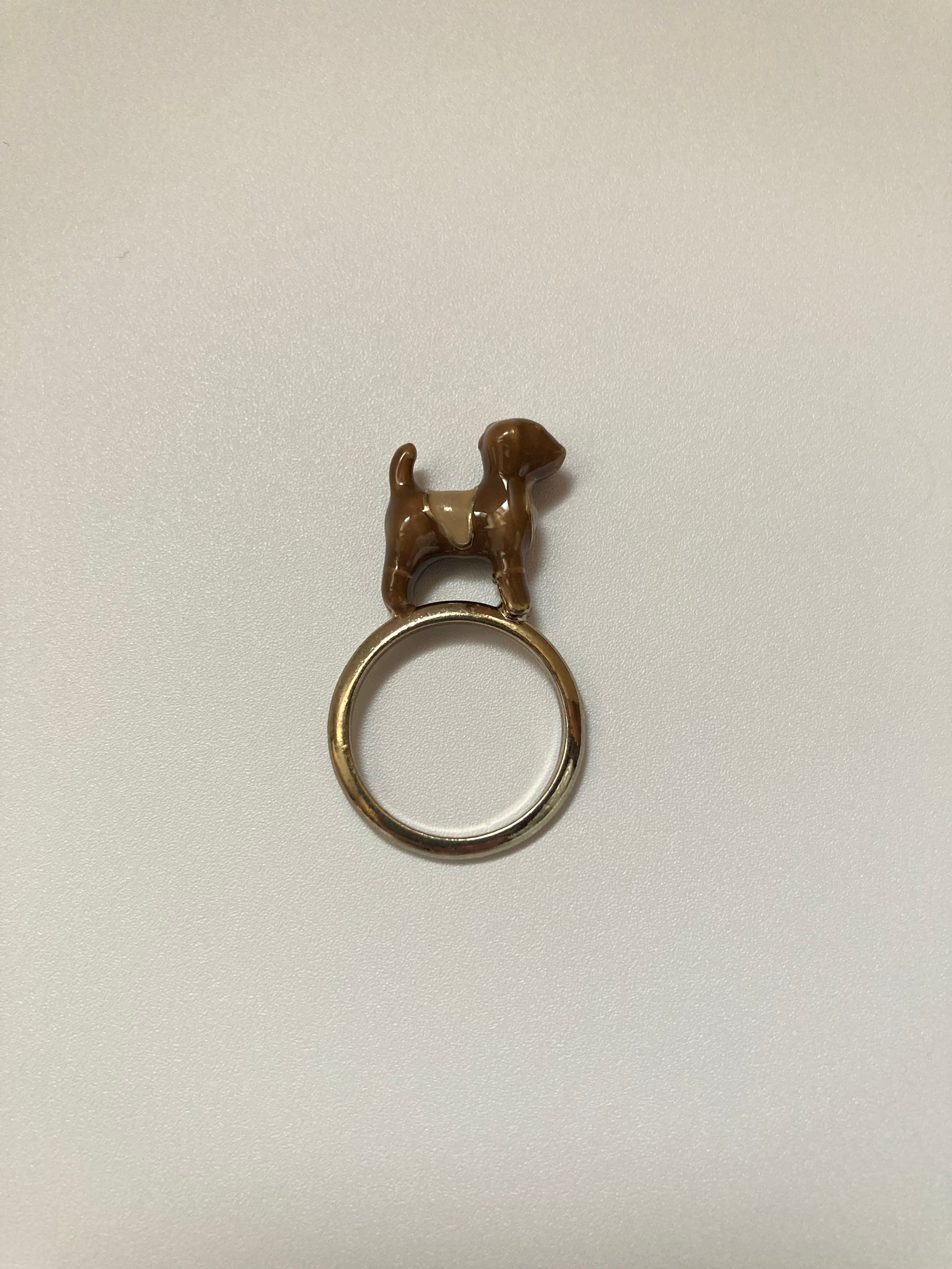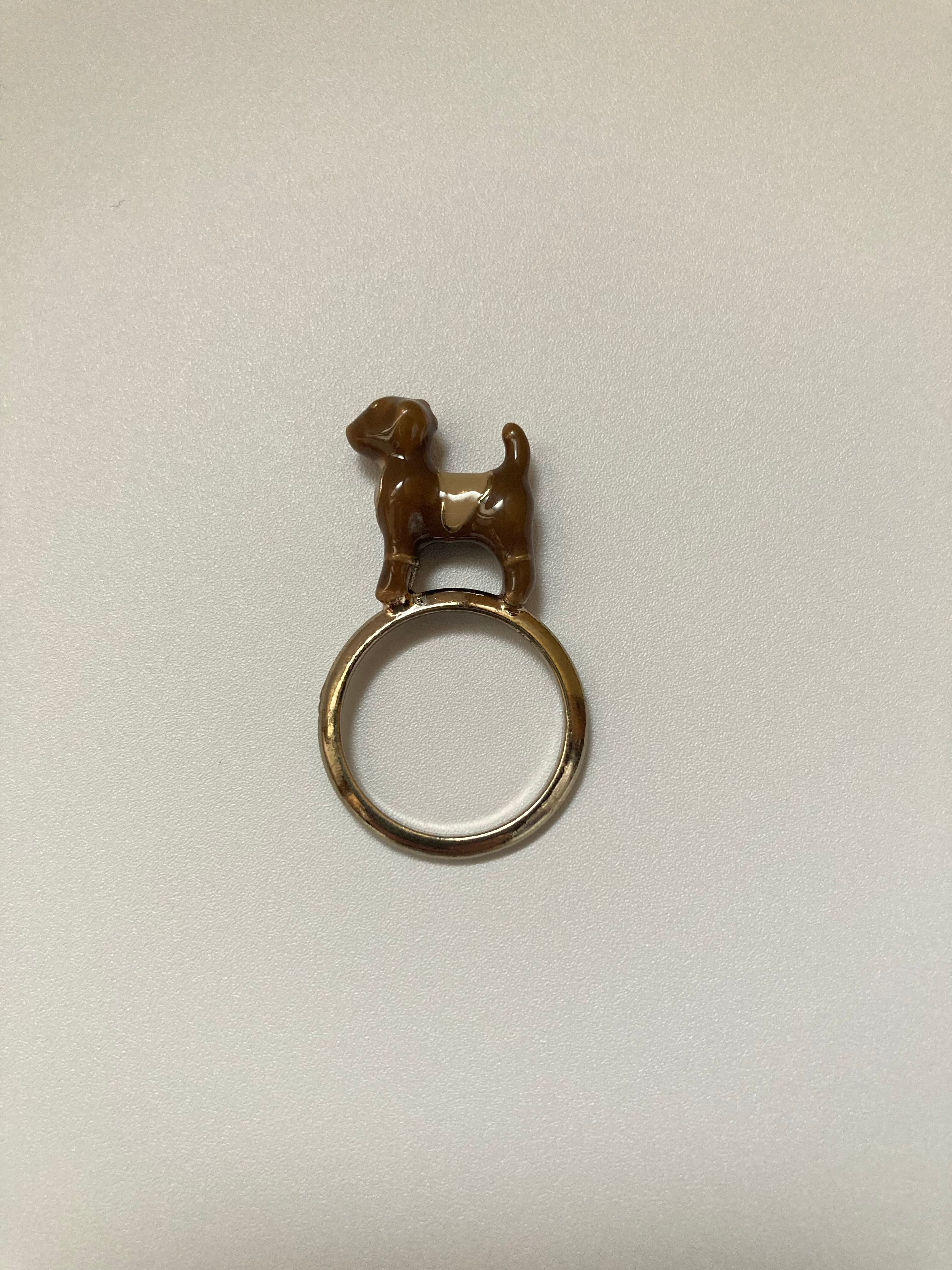 立体的なエナメルの犬がちょこんと乗った指輪です。